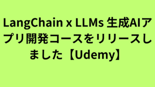 Udemy LangChain x LLMs 生成AIアプリ開発コースをリリースしました【Udemy】 昨今、LLMを用いてアプリを開発するために、LangChainが注目されています。LangChainではOpenAIのGPTモデルや、それ以外にも様々なLLMを利用することができます。またLangChainを用いることでAIチャットボットアプリを簡単に開発することができます。 2024.11.10 Udemy